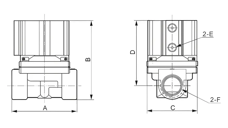 | Modo de funcionamiento | Acción directa | Tamaño del puerto | 3/8"–2" |